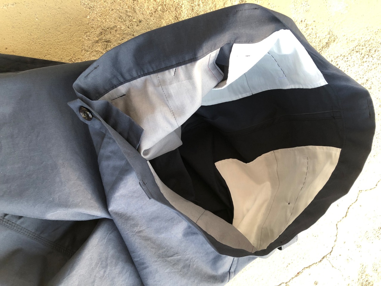 コットンとナイロンで織られていて、シャツ生地よりは少し厚みが程度の薄手生地にも関わらず、しっかりとした風合いの素材感。ナイロン混紡なので耐久性も抜群です。