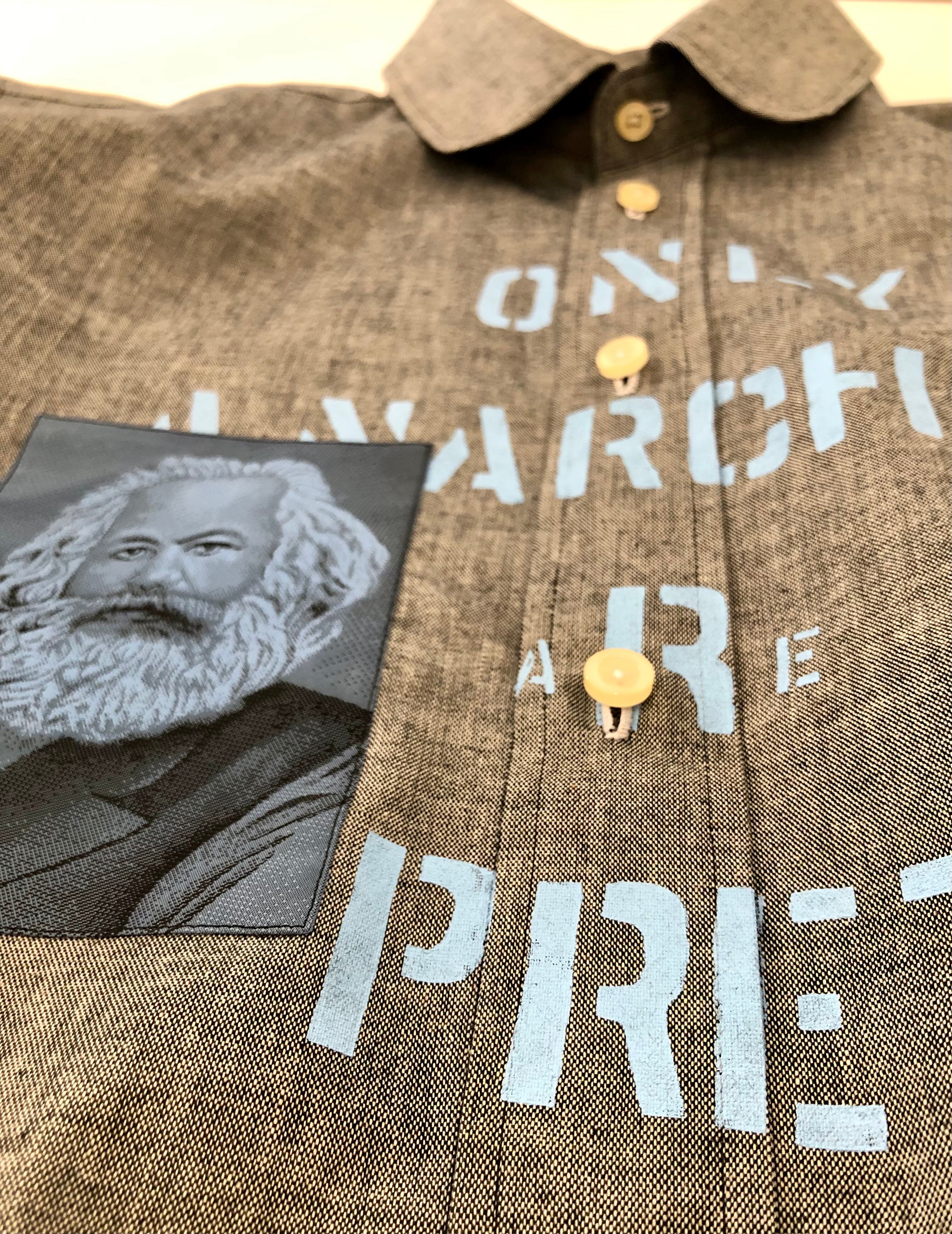 ラウンドカラー オックスフォードシャツ ステンシル パッチ