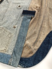 数本の履き込まれたユーズドのデニムパンツを解体し、ダメージのある部分は直して独自の型紙で裁断しています。
