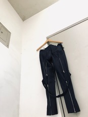 ストライプ コットン ボンテージパンツ