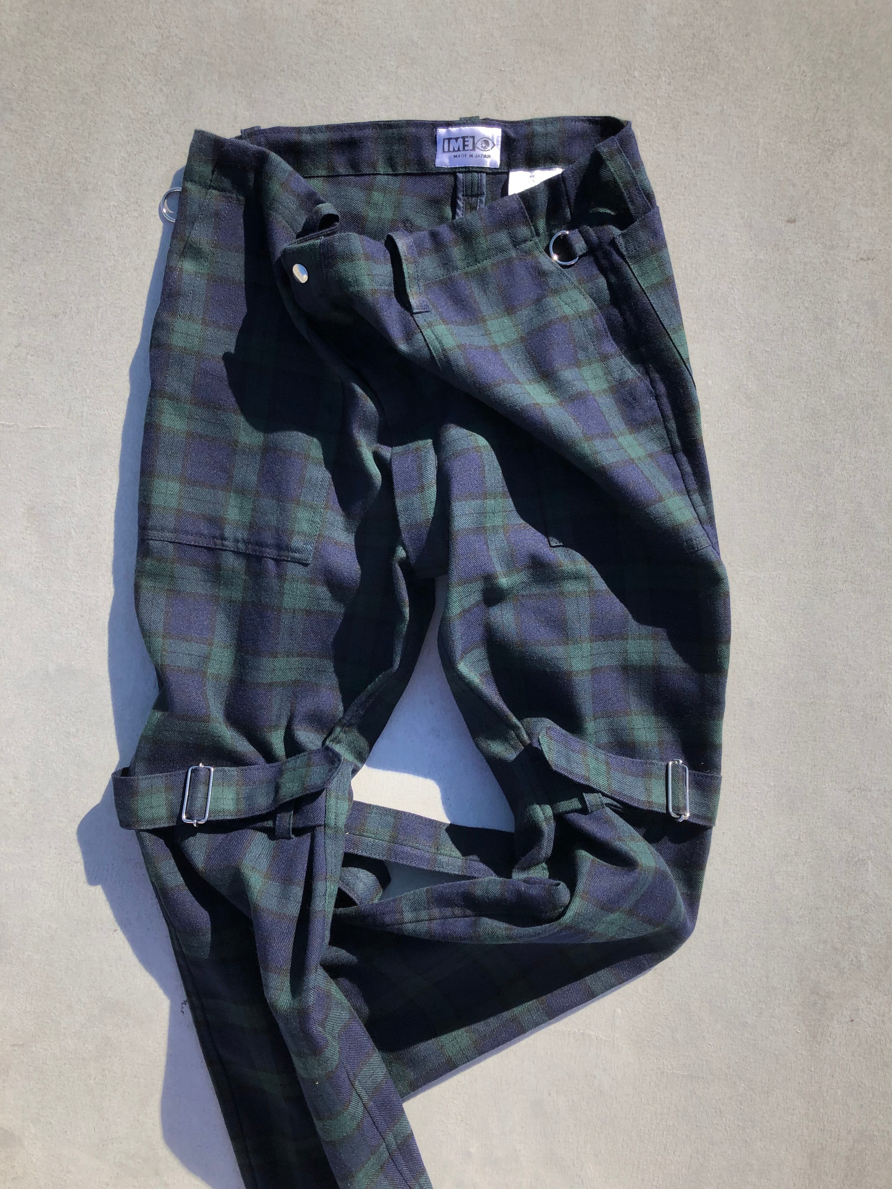 ウエストが大きめのデザインでヒップハングで着ていただけるように股下は短めです。
