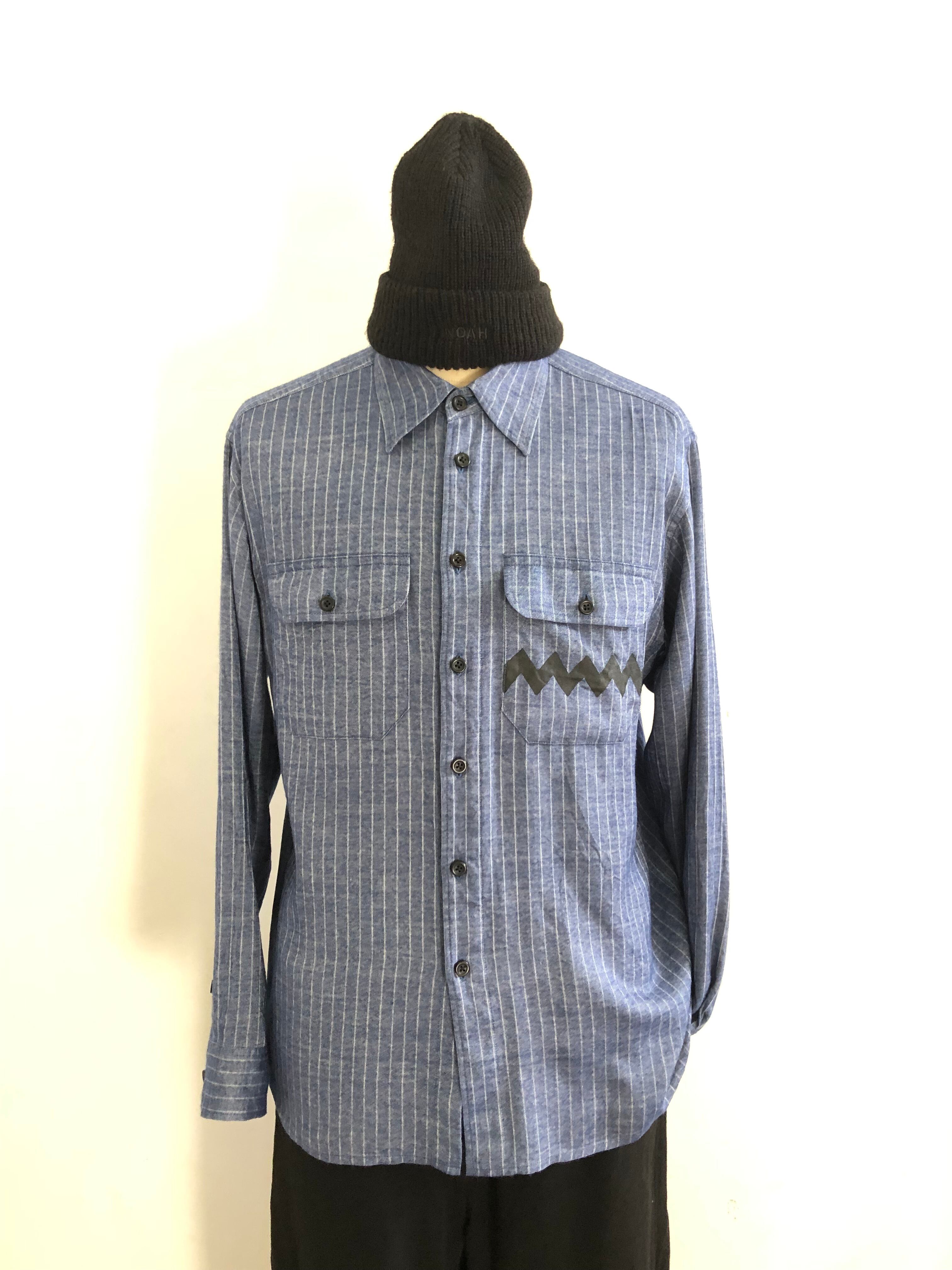 ストライプワークシャツ レーヨン プリント有り